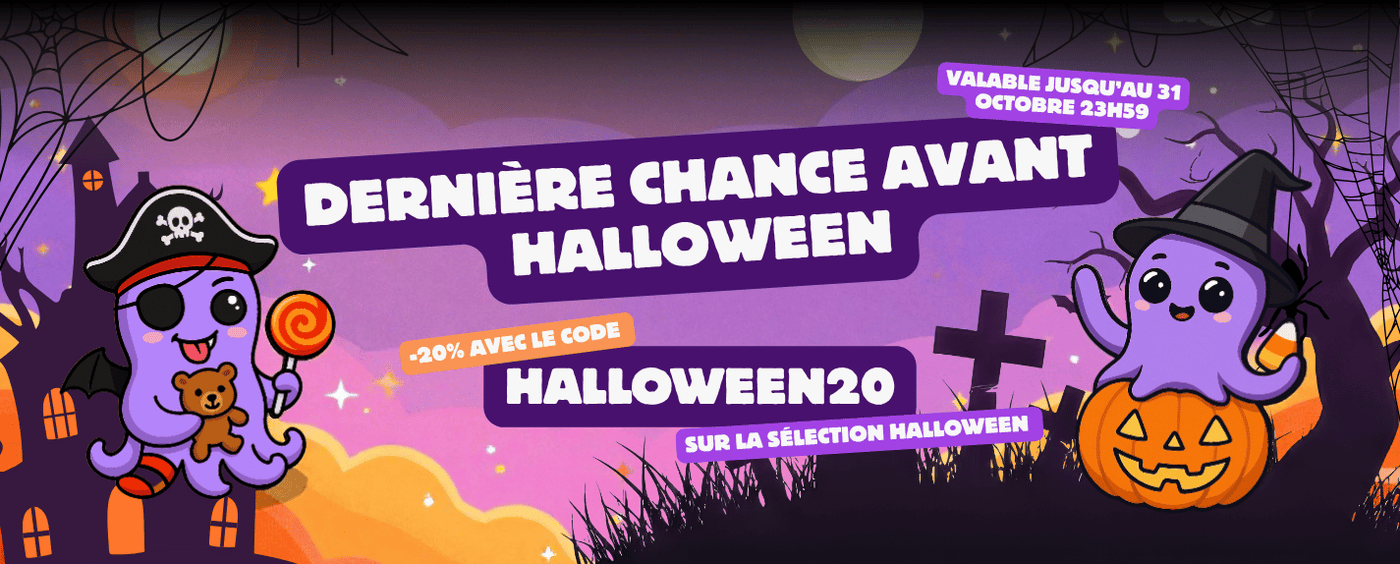 Un cadeau offert dès 45€ d'achat 🎁🤩 - Code HALLOWEEN10 : -10% de réduction dès 30 € d'achat ! 🎃 - 1 sachet Treets offert dans chaque commande 🥜