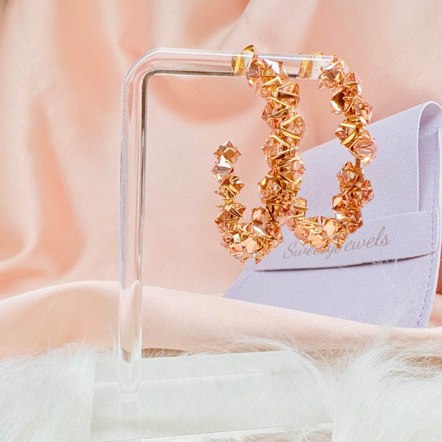 Demi Créoles en acier inoxydable + Cristaux 4cm