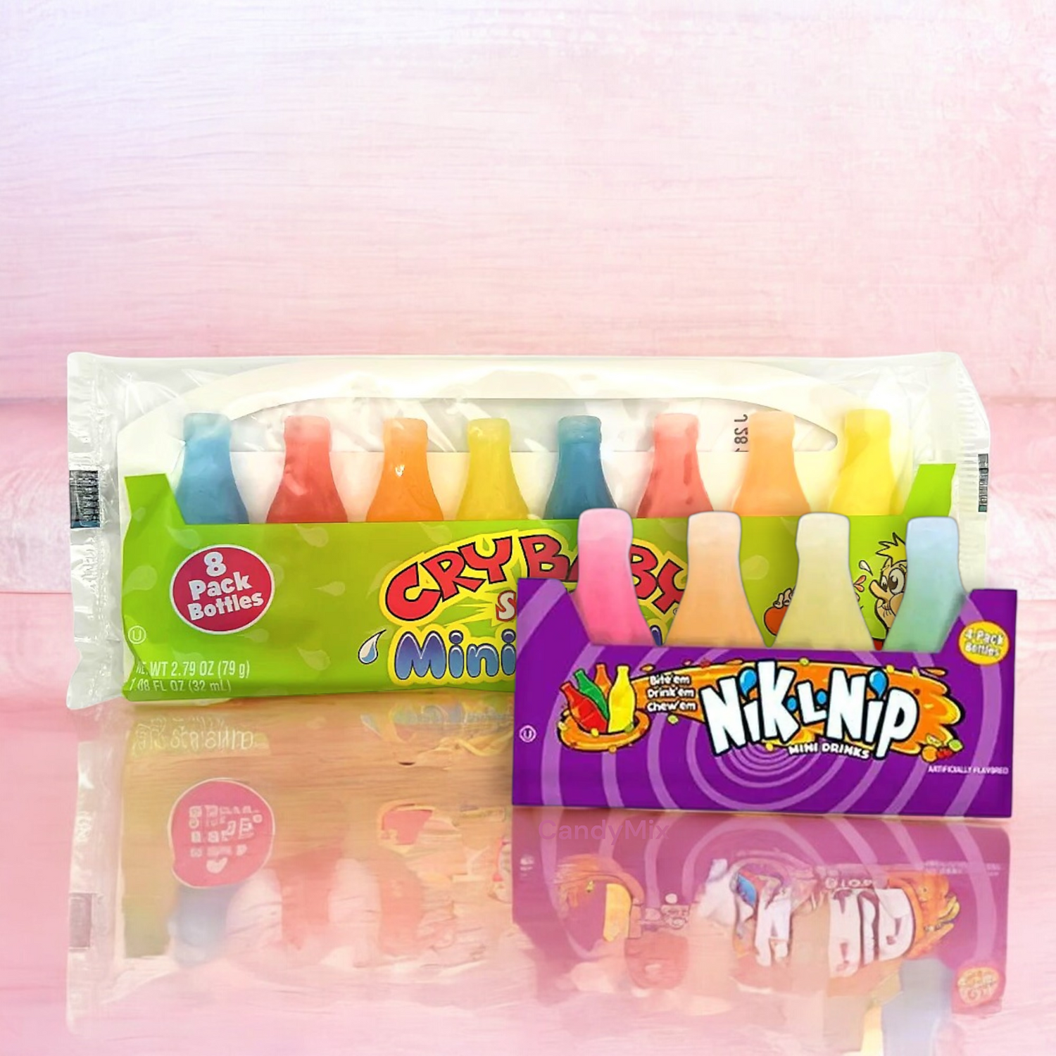 Les Wax Bottles Candy font leur grand retour avec ce duo incontournable ! Ces petites bouteilles en cire renferment un délicieux liquide sucré et acidulé, à savourer en mordant le haut pour libérer toute la saveur.