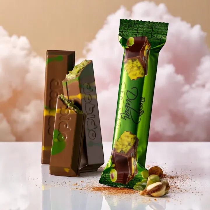 La barre Beyoglu, c’est une petite merveille chocolatée tout droit sortie des confiseries raffinées de Dubaï. Chaque bouchée te fait voyager grâce à un chocolat onctueux et une texture ultra fondante. C’est la rencontre parfaite entre le savoir-faire oriental et l’amour du chocolat. Idéale pour une pause gourmande luxueuse ! 🕌💫