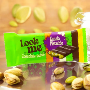 Découvre l’un des chocolats les plus raffinés de la collection Look Me avec la version Kunafa Pistachio : un cœur fondant à la pistache mêlé à des éclats de kunafa croustillant, le tout enrobé d’un chocolat au lait onctueux. Une explosion de saveurs inspirée des desserts orientaux, parfaite pour les palais curieux et les amateurs de gourmandise haut de gamme.