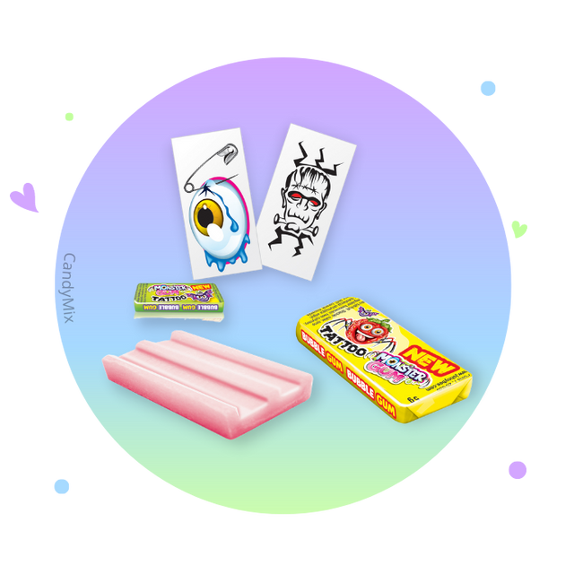 Le Monster Gum est un chewing-gum avec une saveur fruitée douce et acidulée. Chaque paquet de Johnny Bee Monster Gum contient également un tatouage temporaire à collectionner. 🥰
