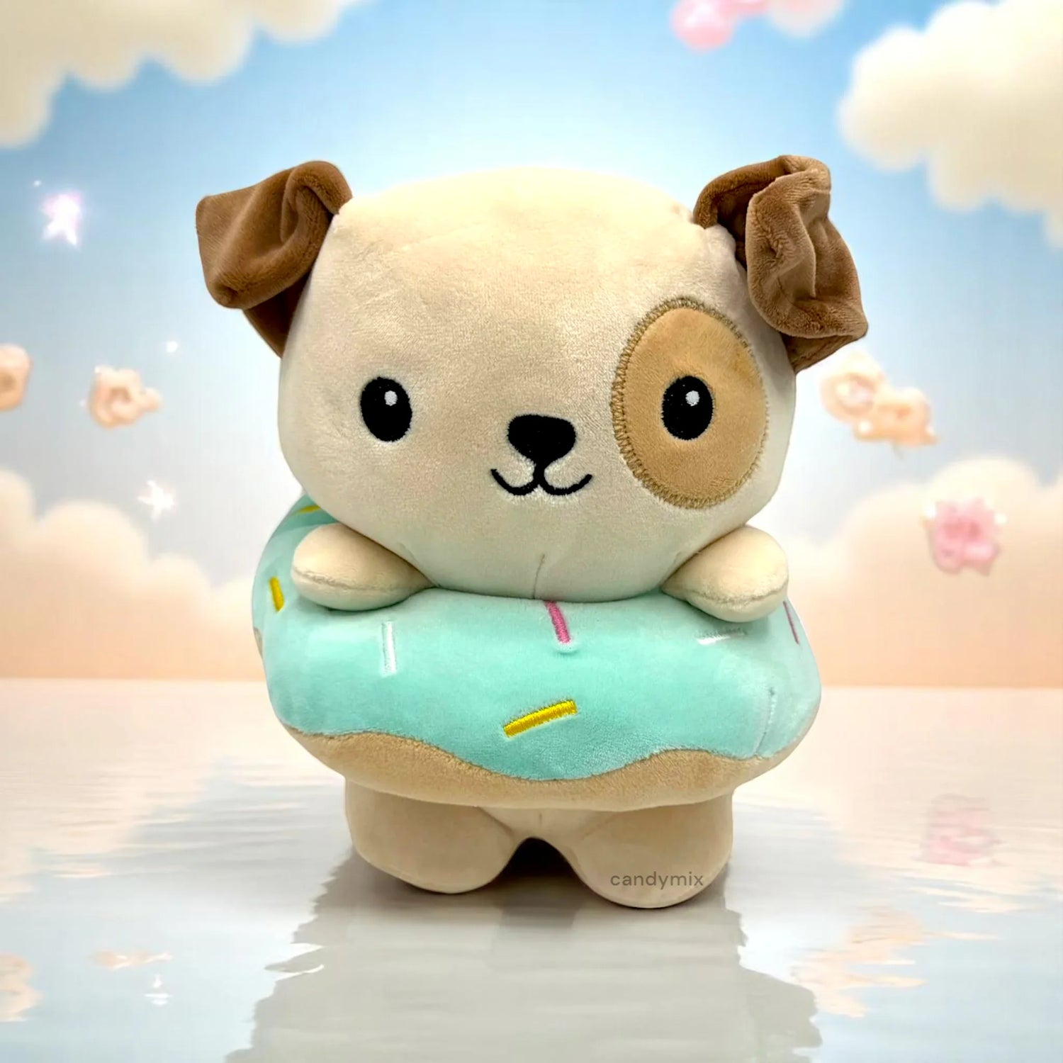 Adopte une peluche ultra douce et originale avec ce petit chien blotti dans un donut moelleux ! Avec ses oreilles tombantes, sa truffe adorable et son regard plein de tendresse, cette peluche de 19 cm est le cadeau parfait pour faire fondre petits et grands. Un concentré de kawaii à câliner à volonté ! 🍩🦥 💙