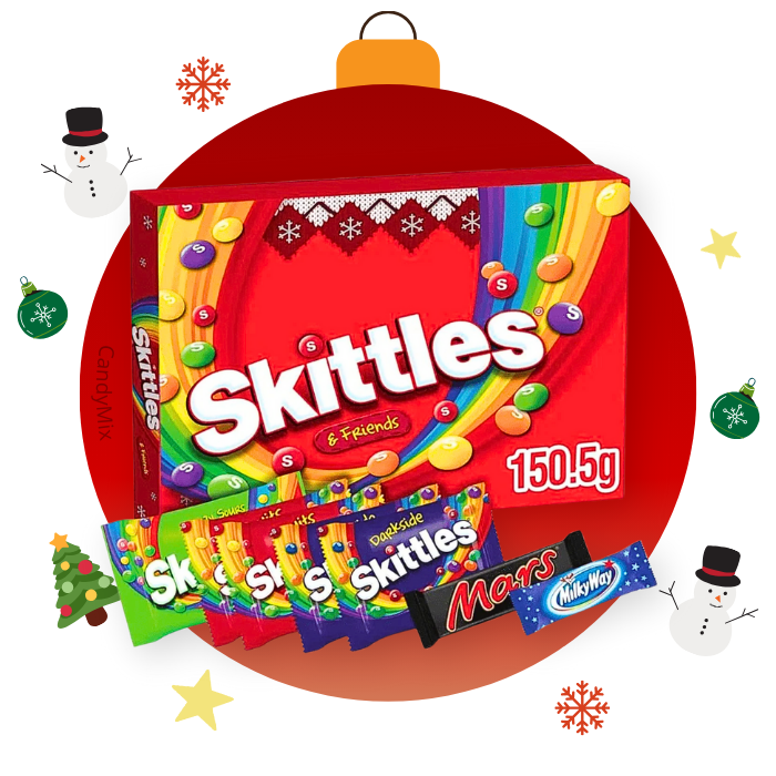 La box "Skittles & Friends" de Noël 150,5g est LE cadeau parfait pour un Noël haut en couleur ! Imagine-toi en train de découvrir un assortiment de douceurs sucrées qui font pétiller les papilles : des Skittles fruités aux saveurs explosives, accompagnés de surprises gourmandes qui raviront les amateurs de bonbons. Avec ce coffret festif, c’est la promesse de moments fun et sucrés à partager entre amis ou en famille, pour ajouter un peu de magie et de douceur à ta fin d'année. ✨