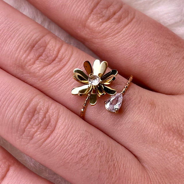 Ajoute une touche d'élégance à ta collection avec la Bague Anastasia. Fabriquée en acier inoxydable, elle présente une délicate fleur ornée de strass scintillants, reflétant subtilement la lumière. Sa conception réglable assure un ajustement parfait et confortable pour tous les doigts