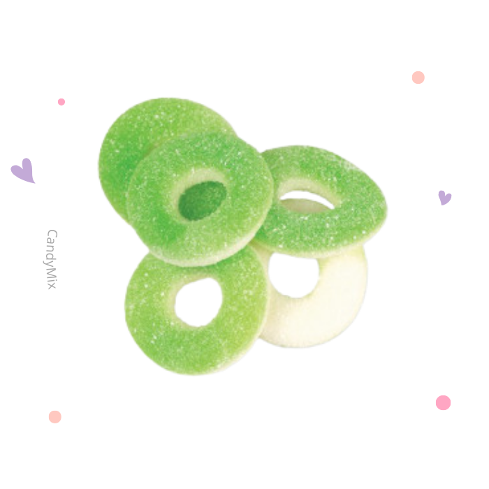 Plonge dans l'univers des Anneaux Pomme de Trolli, des bonbons amusants et savoureux qui vont te transporter dans un verger de délices fruités. Chaque bouchée offre une explosion de saveurs avec un goût de pomme acidulée et une texture moelleuse irrésistible. 🍏