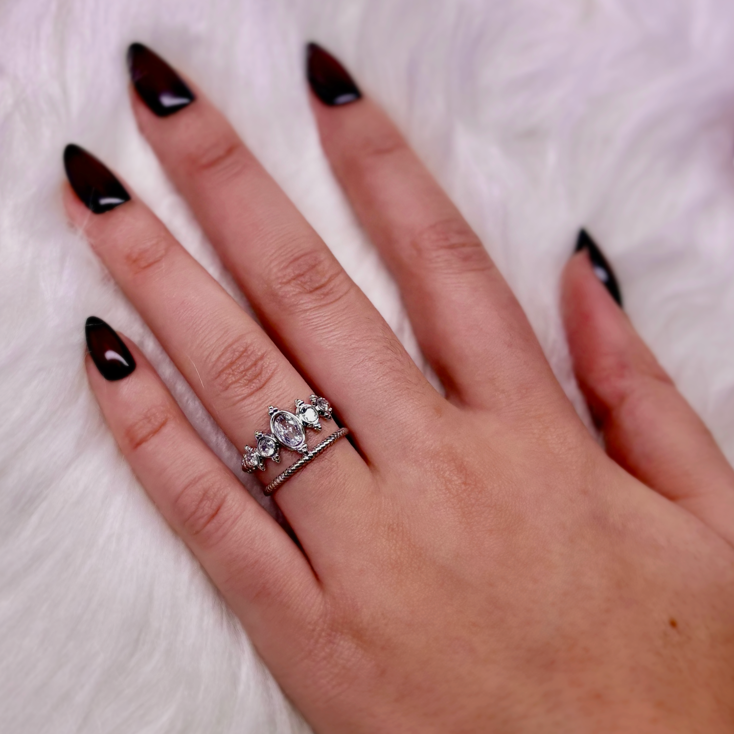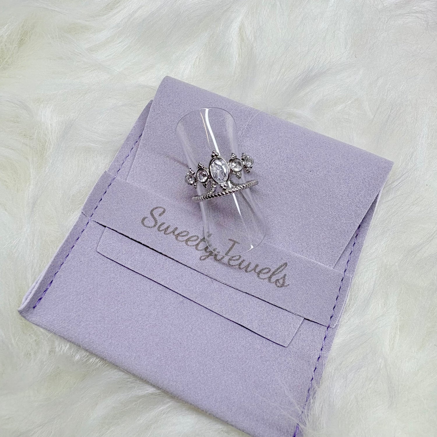 Bague argenté en forme de diadème, inspirée de l’élégance de Cendrillon. Son design princier ajoute une touche de magie et de raffinement à ton style.