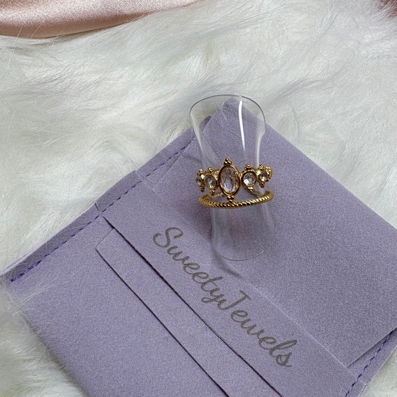 Bague dorée en forme de diadème, inspirée de l’élégance de Cendrillon. Son design princier apporte une touche de magie et de raffinement à ton style.