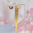 - Une boucle présente une cascade de chaînes fines, sublimée par un cristal violet facetté.