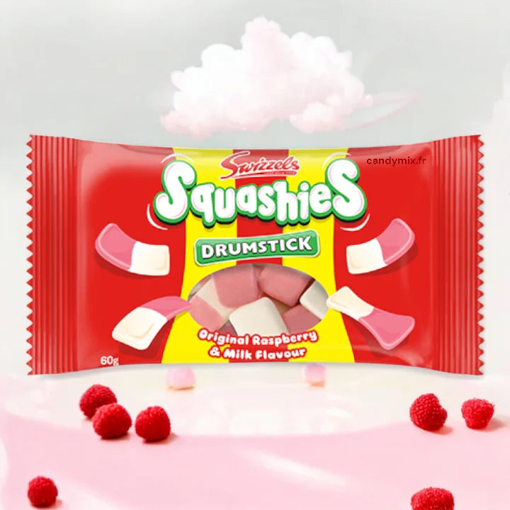 Finden Sie die Delikatesse von Drumstick in einer Version Ultra -Soft mit ihnen Swizzels Squashies Drumstick 60g ! Diese zarten und zarten Süßigkeiten kombinieren die Süße von Milch und die Frische von Himbeerefür eine Explosion von Aromen mit jedem Biss. Ein unwiderstehlicher Snack, der alle Liebhaber weicher Süßigkeiten schmilzt!