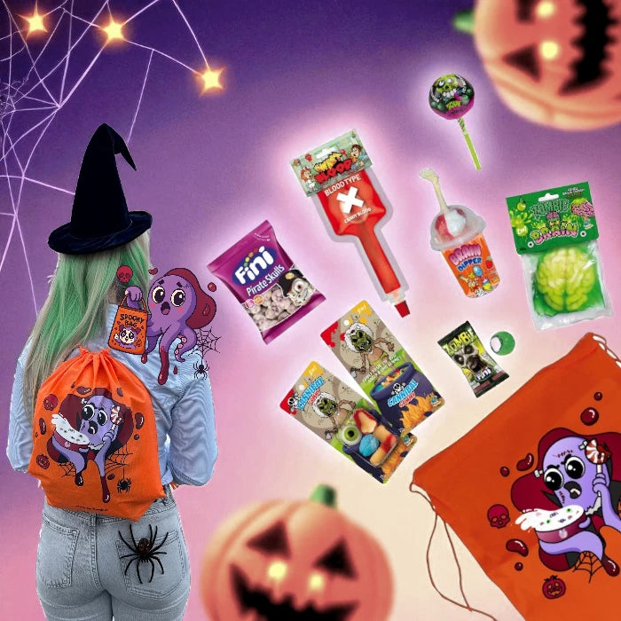 Diese gruselige Tasche kann enthalten: Blutige Augen / Gehirn in Blut Süßigkeiten / Zombie Mund Maler Gummi / Atomstreik üppig / Hallowping & Lollipop / Originalbonbon für giftige Abfälle / Fingerdip / Zombie TerroR / Scary Pops Halloween / Gruseliges Gelee / Horror Fizz Max / Center Shock Monster Mix / Frutman Rainbow / Brain Blasters Brain Blitz Chew Bar / Zahnfleischzerstörer / VAMPIRE BUBEGUM LULLIPOP / Yaokin Monster Stamp Candy / Gummi -Mumien / Jake -Zähne / Zed Terror Augen / Johny Bee Monster Gum + Tattoo / PLOUF PLOUF verbrannten Köpfe