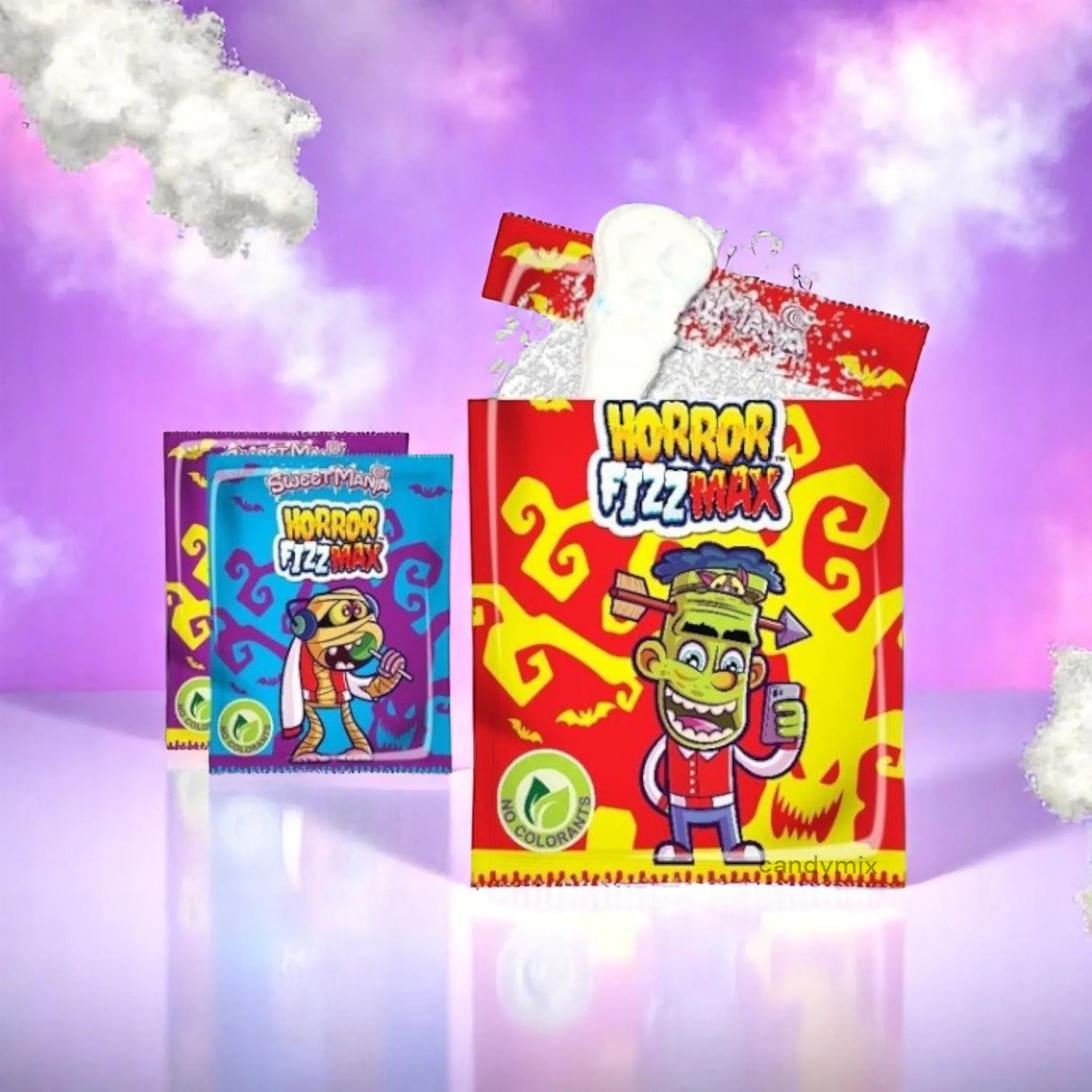 Viel Spaß mit dem Horror Fizz Max, A Süßigkeiten Knochen -verdrängt und seine würziges Pulver. Jeder Bissen ist ein spielerisches Abenteuer für die Geschmacksknospen zwischen den knackig von Süßigkeiten und die scharf Pulver 🤤💀