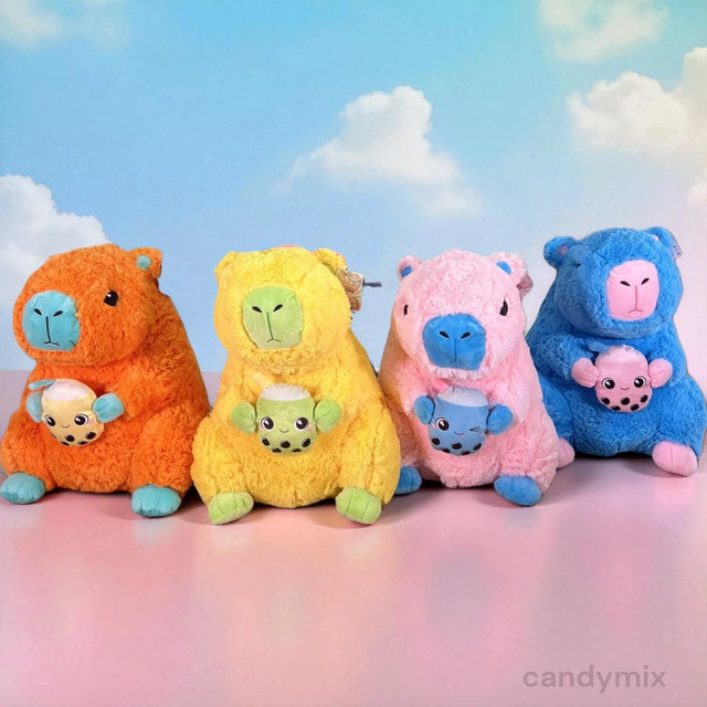 Adopte la peluche la plus mignonne et réconfortante ! Ce capybara géant tient un bubble tea entre ses petites pattes, pour encore plus de douceur et de kawaii.
