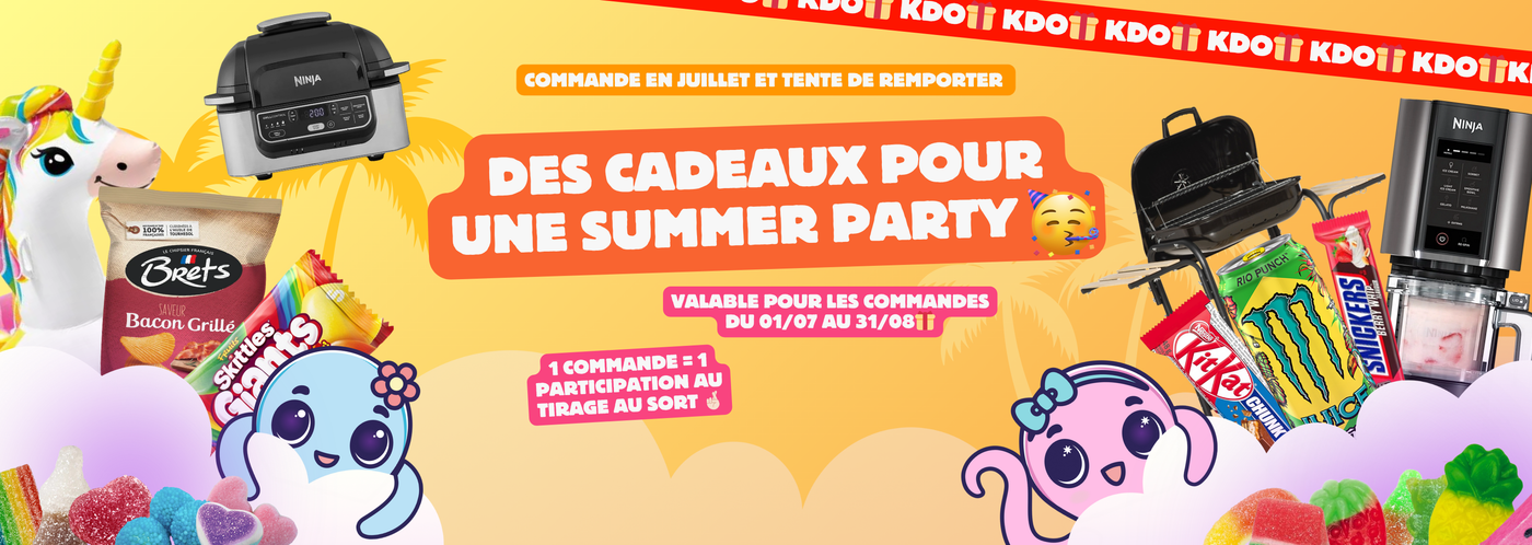 La société LR Web Business dont le siège social est au 7 rue de la Grange Laidet 79000 Niort, ci-après dénommée “ CandyMix ” organise un jeu avec obligation d’achat intitulé “Gros KDO du mois" du 01 JUILLET 2025 au 31 AOUT 2025 inclus. Le concours commence le 01/07 à 00h01.