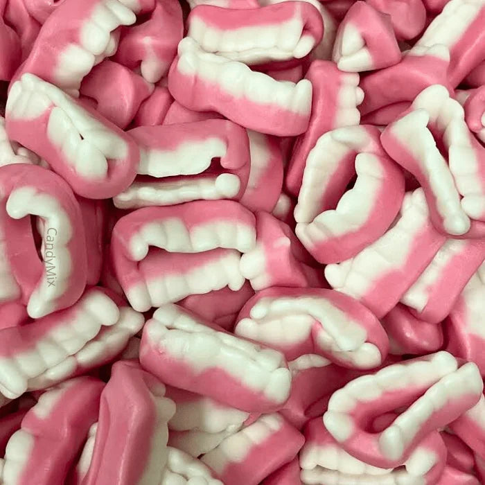 EL Dientes de vampiros de Park Lane son Caramelo gélificado ¡En forma de dientes crujientes, perfecto para Halloween o para agregar un toque divertido y monstruoso a su barra de caramelo! Suave, afrutado y ligeramente picante, complacen monstruos jóvenes y grandes.
