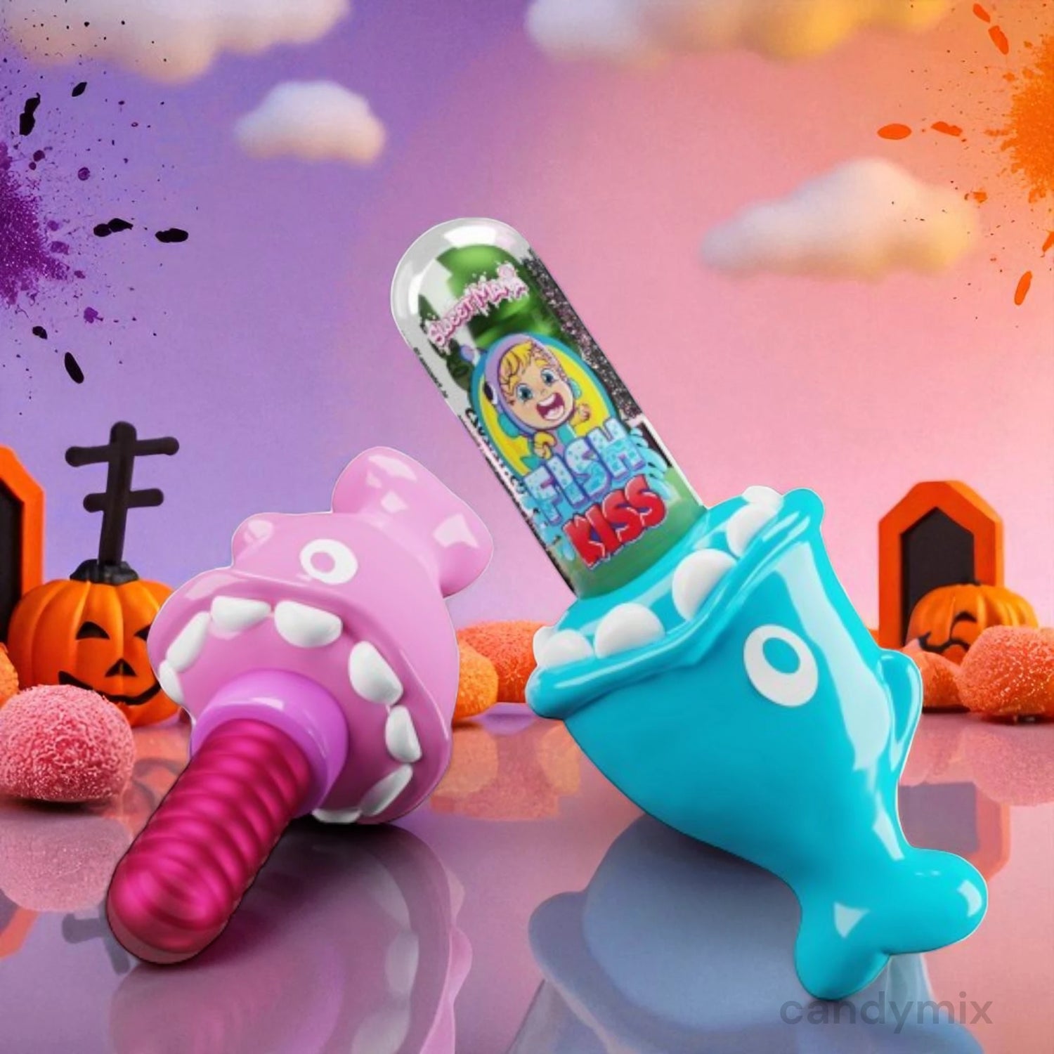 Vendue à l’unité, la sucette Fish Kiss est idéale pour compléter un sachet de bonbons Halloween, amuser tes amis lors d’une fête ou offrir une friandise au look totalement unique.
