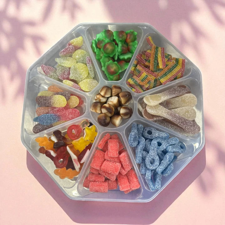 J’ai rassemblé dans ce plateau tous mes bonbons préférés pour te partager mes coups de cœur sucrés 💕. À l’intérieur, tu retrouveras un mélange de douceurs acidulées, fruitées et colorées… bref, tout ce que j’aime croquer au quotidien !