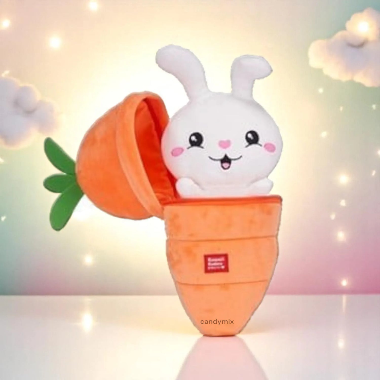 Une carotte qui cache un petit lapin trop craquant ! La peluche Zip Lapin Carotte de 24cm est une peluche 2-en-1 : refermée, elle ressemble à une carotte toute douce, mais une fois ouverte, elle dévoile un lapin moelleux à câliner. Parfaite pour surprendre, jouer et offrir un moment de tendresse 🧡✨