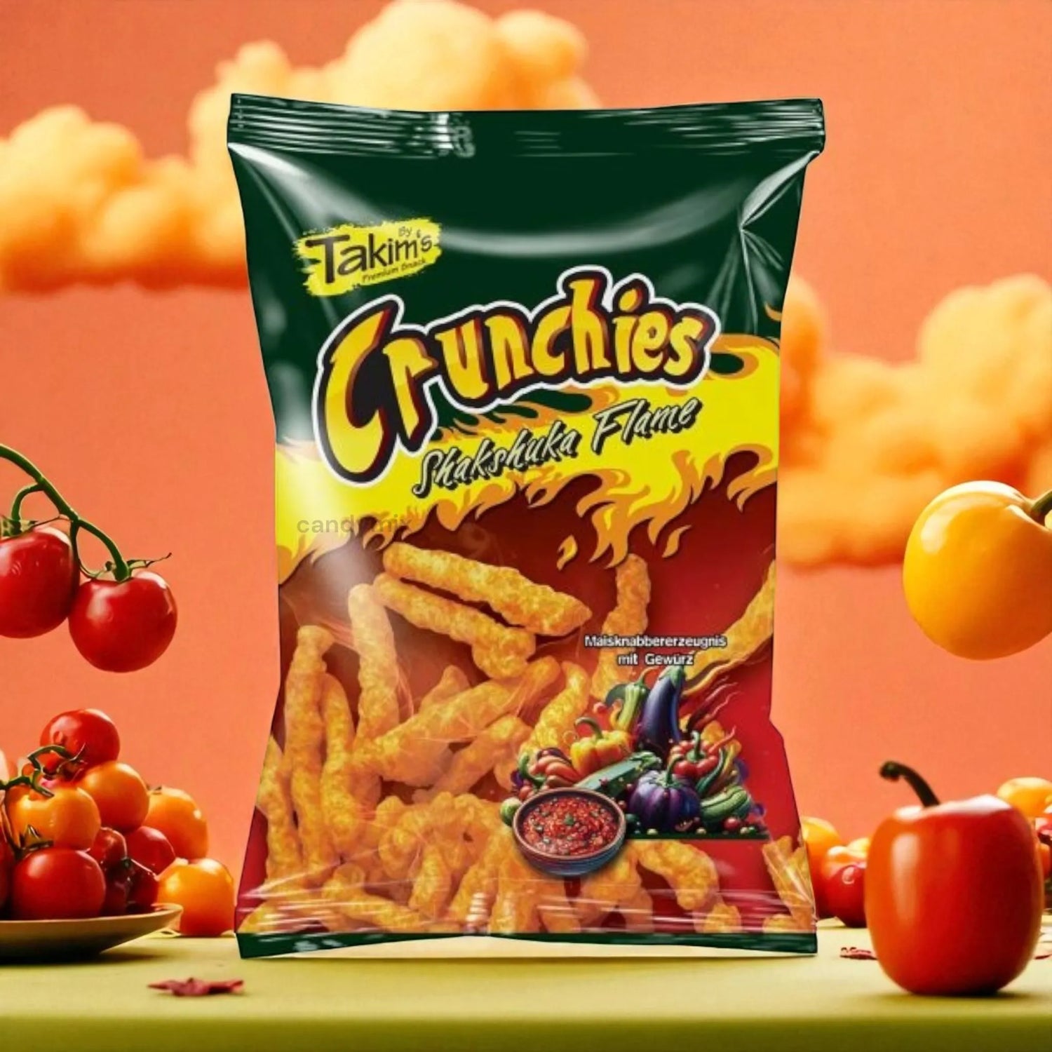 Les Takims Crunchies Shakshuka sont de délicieuses bouchées soufflées au maïs, inspirées du plat emblématique du Moyen-Orient : la shakshuka. On retrouve ici un cocktail d’épices méditerranéennes, de la tomate et une note piquante, le tout dans un snack croustillant et addictif à souhait. Un produit original et savoureux pour les amateurs de nouveautés salées.