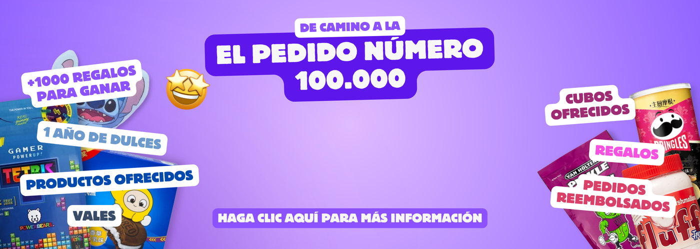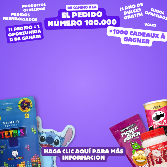 - *El premio mayor 🎁 : Allá 100,000 ° pedido ganará 1 año de dulces gratis (en forma de un cupón mensual de € 41.60 por 12 meses).
