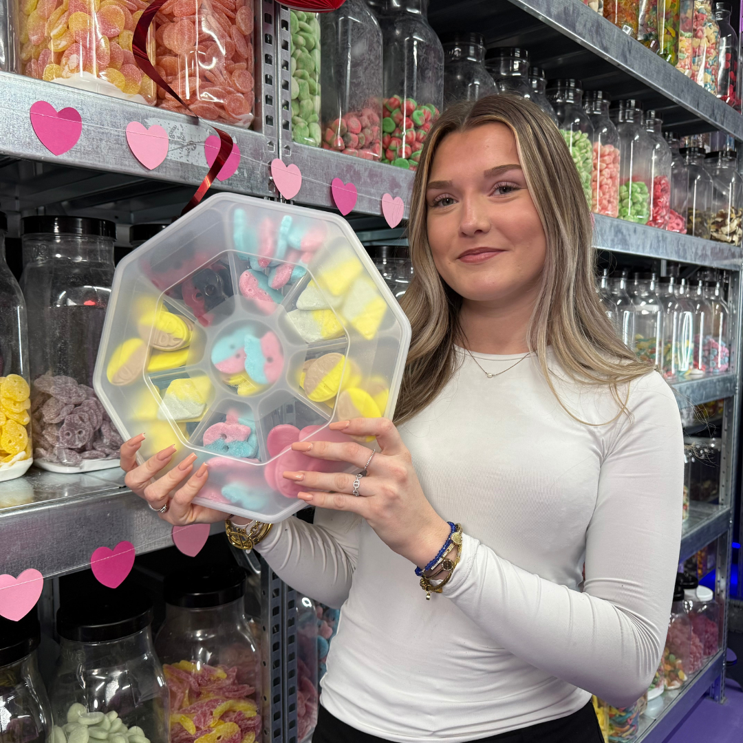 Todo presentado en un bandeja rígida y reutilizable : práctico para guardar tus dulces, volver a mezclarlos más tarde o incluso utilizarlo para un aperitivo dulce. Además, ¡son caramelos veganos!