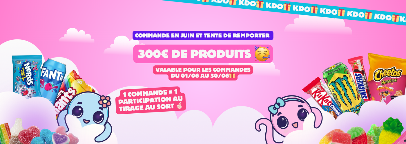 La société LR Web Business dont le siège social est au 7 rue de la Grange Laidet 79000 Niort, ci-après dénommée “ CandyMix ” organise un jeu avec obligation d’achat intitulé “Gros KDO du mois" du 01 Juin 2025 au 30 Juin 2025 inclus. Le concours commence le 01/06 à 00h00.